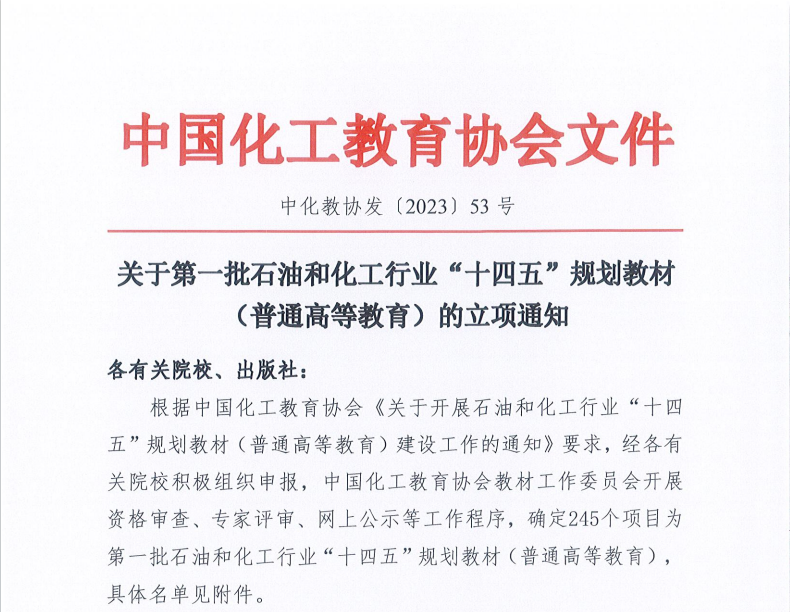 在中国化工教育学会公布的第一批石油和化工行业“十四五”规划教材(普通高等教育)立项名单中,由av电影 王新东教授主持申报的《电化学储能科学与工程》获批立项。