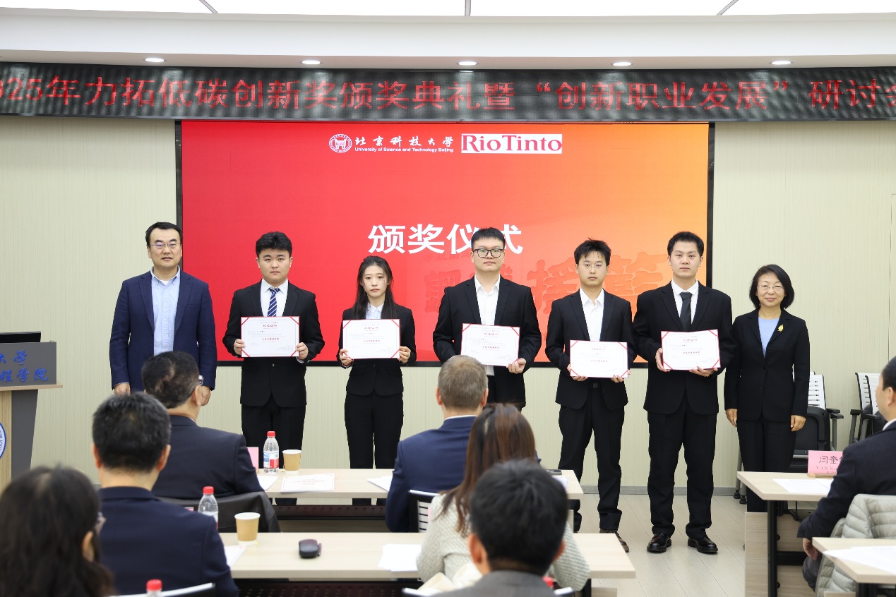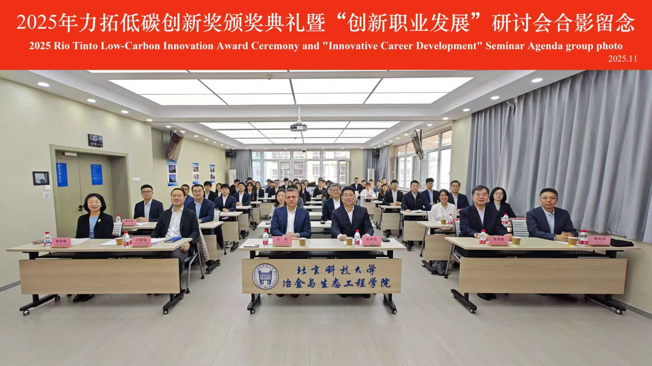 11月12日,2025年力拓低碳创新奖(以下简称“创新奖”)颁奖典礼暨“创新职业发展”研讨会在冶金楼616顺利举行。力拓集团首席创新官段巍(Dan Walker),科技与创新中国区总经理南利辉,中国区首席法律顾问钱雪梅,中国人力资源高级总监李蕾蕾,力拓集团创新高级总监蕾拉(Leila Mosalaeepour),科技与创新中国区总监周宇昂,av电影 党委副书记孙景宏,校友会办公室、基金会办公室主任闫奎铭,冶金学部主任张建良,av电影 党委书记宁晓钧,能源与环境工程学院教授苏伟,绿色低碳钢铁冶金全国重点实验室副主任陈潇,资源与安全工程学院副教授肖柏林出席典礼。av电影 党委副书记、副院长康泰主持典礼。