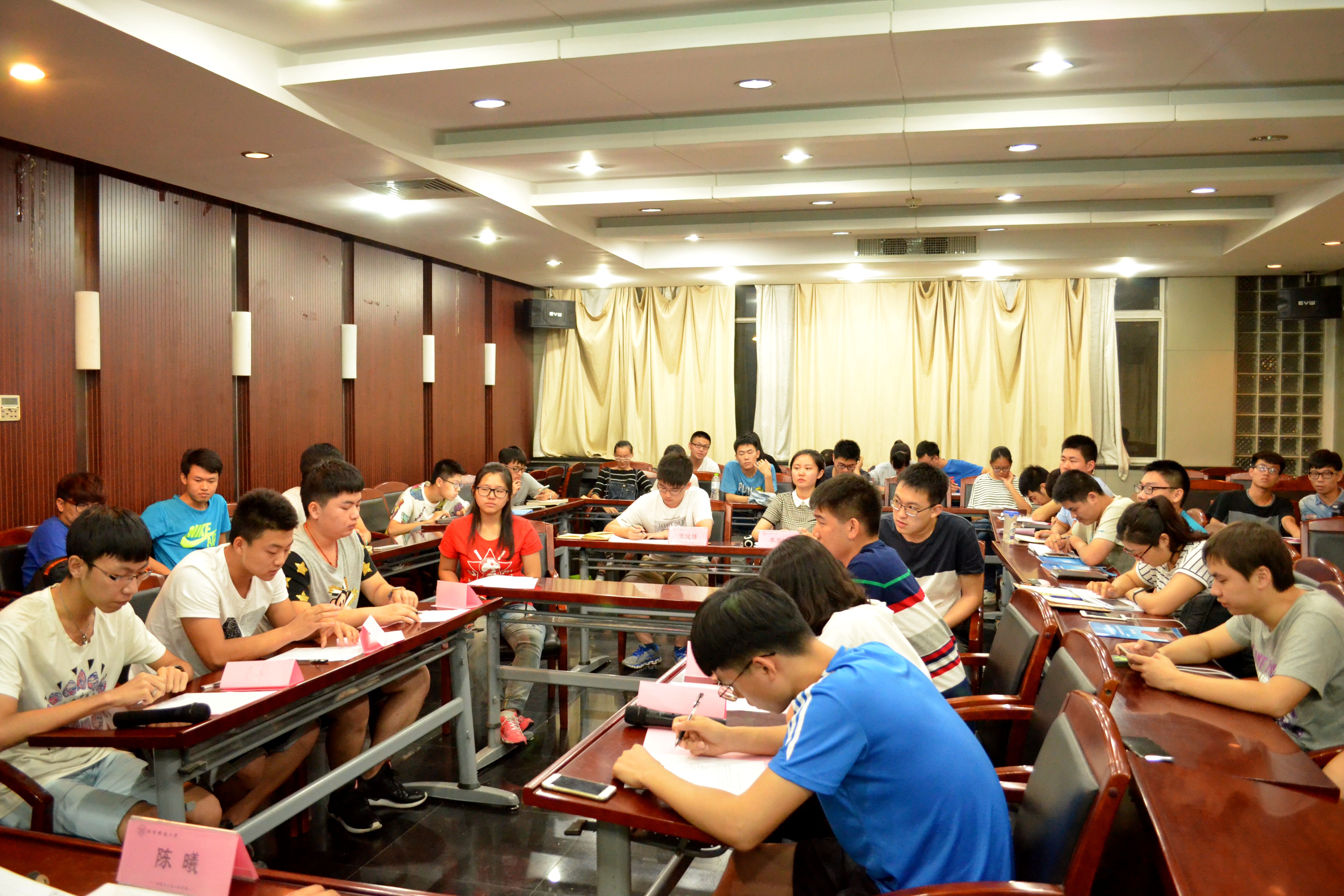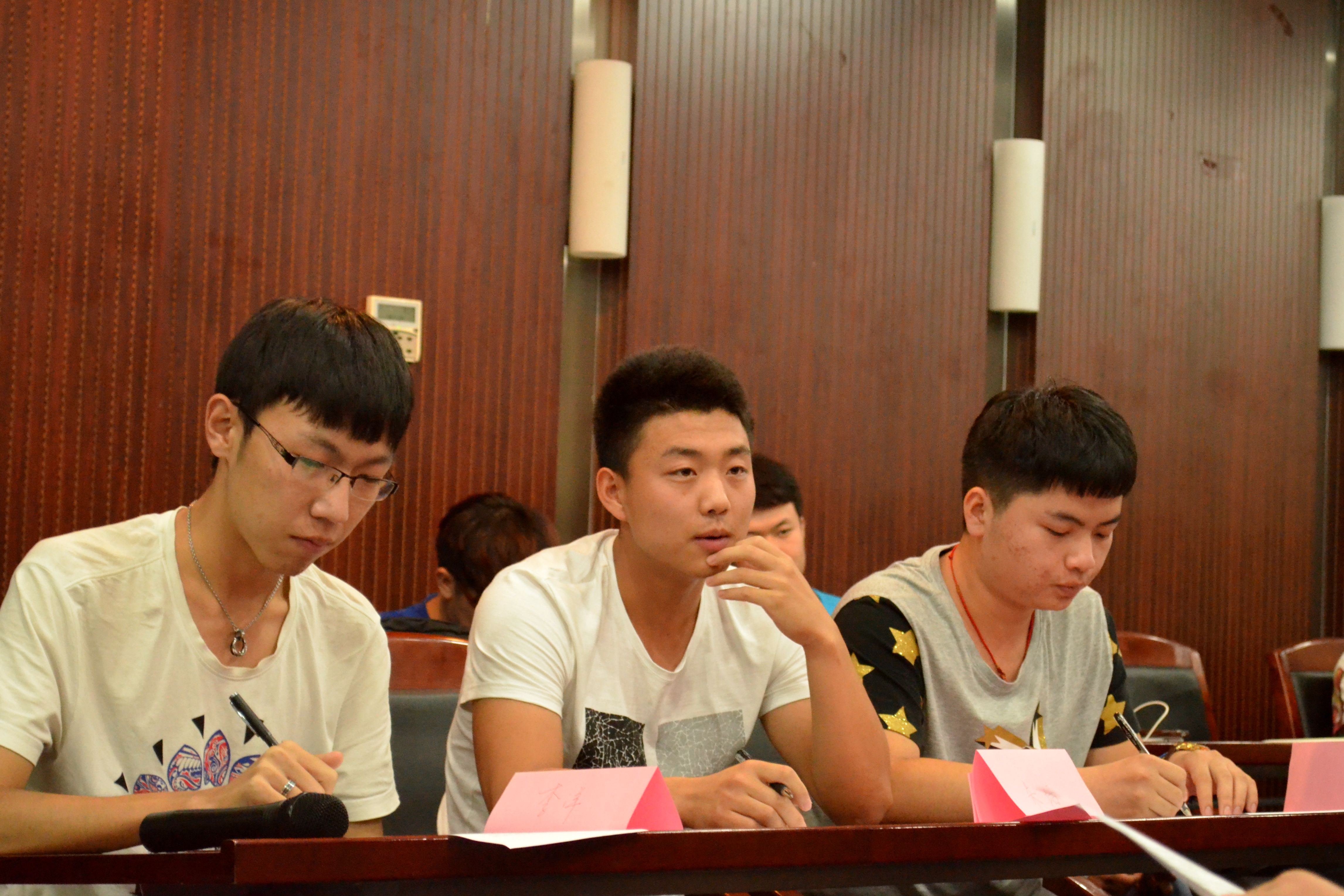 在接下来进入模拟实战环节中,学生骨干分别就《“钢铁摇篮”文化节系列活动的宣传推广方案》、《飞机失事后求生的15件物品》等题目进行了讨论,学生骨干们积极思考,新奇观点百出,时而引得在场观众捧腹。尽管初期讨论过程曲折多变,但确立了大致方向后,成员们都踊跃参与,出谋划策,最终得出了一份份较为完备的讨论方案。