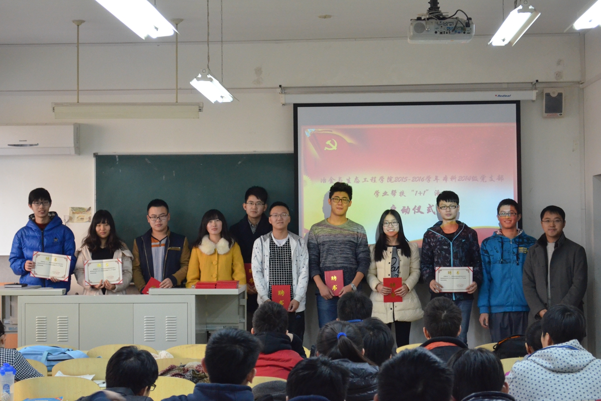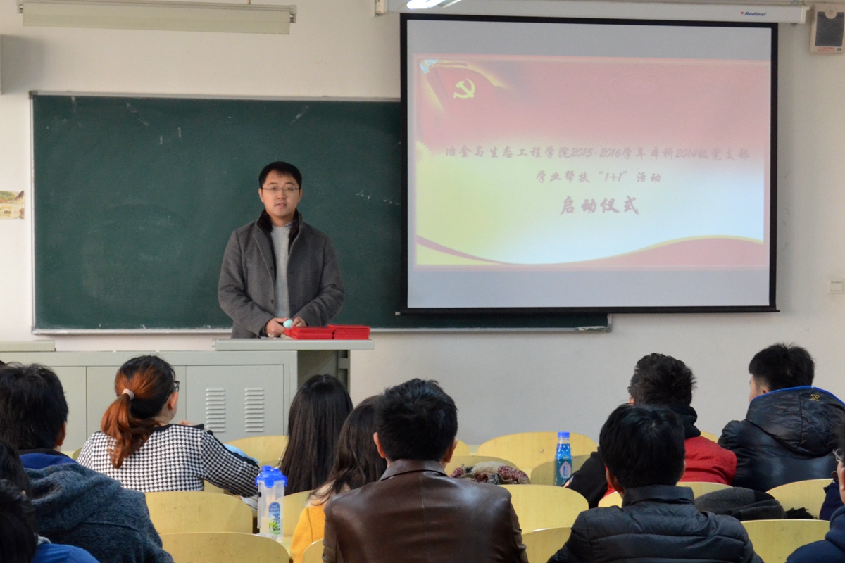 本科2014级党支部在冶金楼举行2015-2016学年学业帮扶“1+1”活动,党支部入党积极分子和年级学业困难同学参加了此次学业帮扶活动的启动仪式。