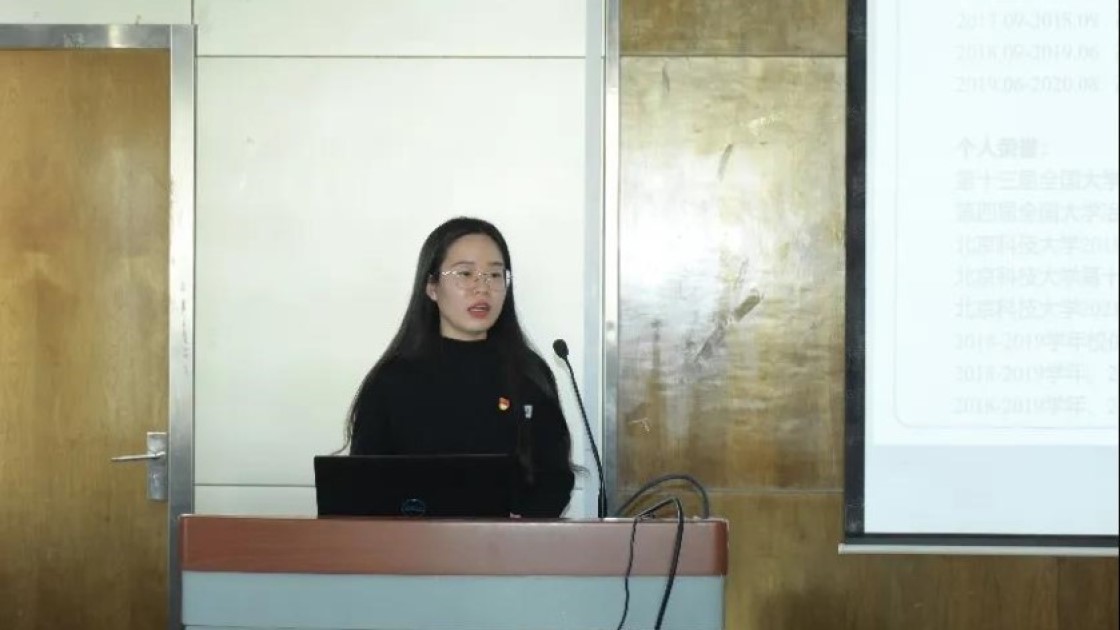 支部组织委员梁璐进行主题分享《一个铁姑娘的成长之路》。她结合自身的党员发展流程,为同学们梳理出成长时间表,让一名党员的发展之路有迹可循。支部积极分子高昕进行《请党放心,强国有我——参与七一重大活动分享》,向大家讲述在建党百年的历史性时刻,她是如何用歌声表达对党和祖国的热爱。支部积极分子王策以《我见证了双奥之城的诞生——冬奥志愿服务经历分享》为主题,将在五棵松体育场热情志愿服务、科技助力冬奥的故事娓娓道来,鼓励同学们扎实学习专业知识,砥砺青年之志,报效伟大祖国。