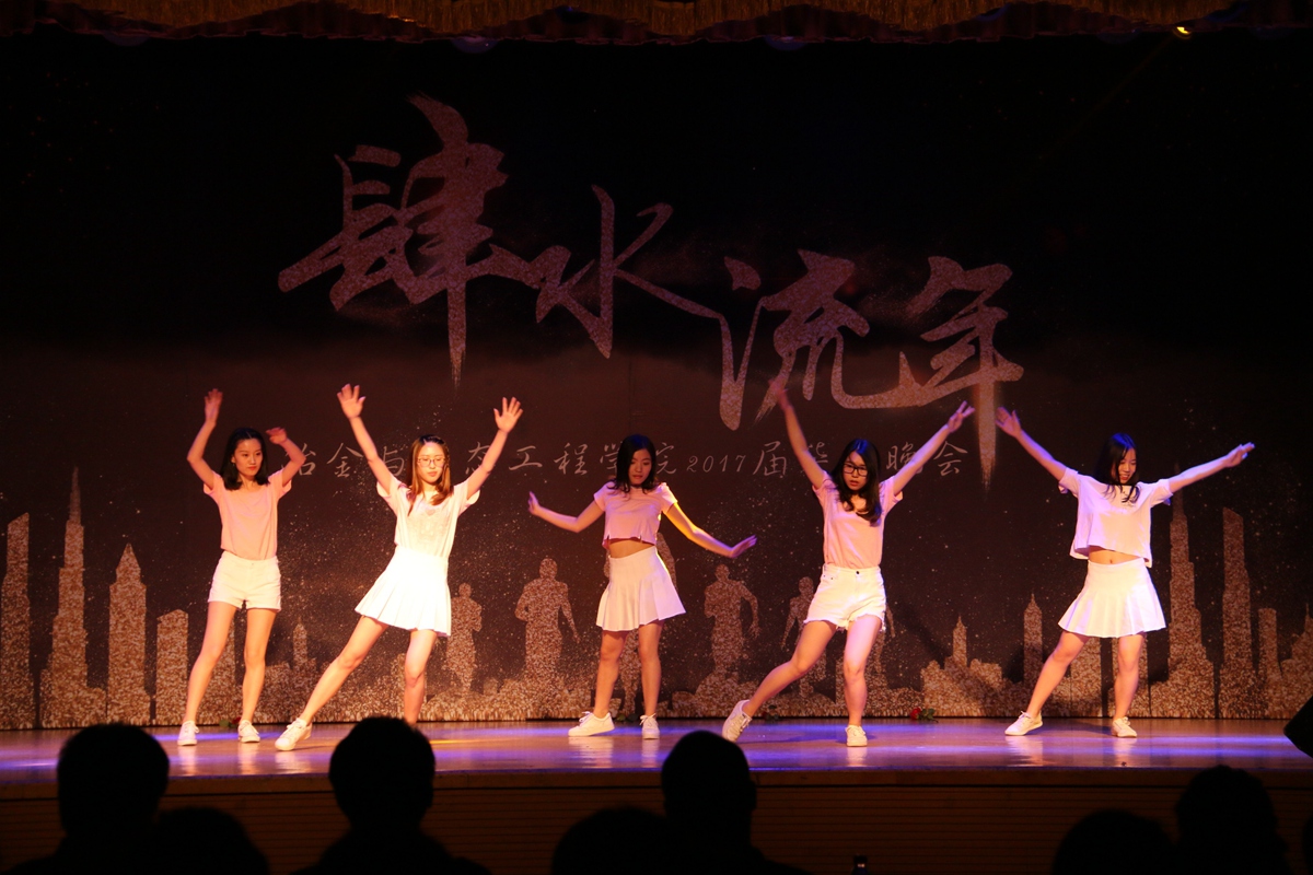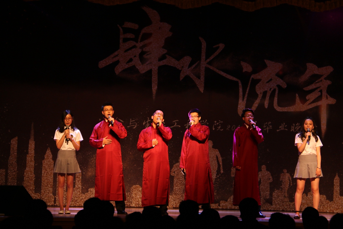 毕业晚会分为“初识,播种希望”,“蜕变,相伴成长”,“绽放,逐梦起航”三个篇章。开场视频带领着现场同学们回顾了大学四年多姿多彩的生活,随后劲爆的开场舞引燃全场,舞出大学生的活力和青春的姿态。