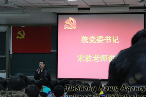 2011年3月25日晚七点,我校第166期学生业余党校入党积极分子培训班开学典礼暨第一讲于逸夫楼107教室准时召开。av电影 党委书记宋波、党委副书记王春义、马列主义学院左鹏教授、2010级本科生辅导员李萌出席了会议,av电影 团委常务副书记尹传举参加并主持会议,本、硕、博入党积极分子参加了会议。本次培训班旨在提高入党积极分子对党的认识,端正其入党动机。