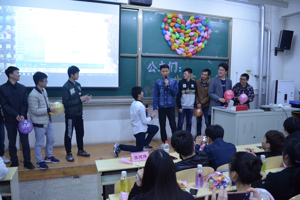 冶金1605班用一种近乎告白的方式表达了五班全体男生对女生们的关爱与呵护;冶金1606班则在由全班男生用队列摆出了班内女生们的姓氏,创意独特。在晚会临近结尾,辅导员张健博老师送上蛋糕,给女生们带来最后的惊喜,他说他要像骑士一样,去保护他的公主们找到自己的王子。
