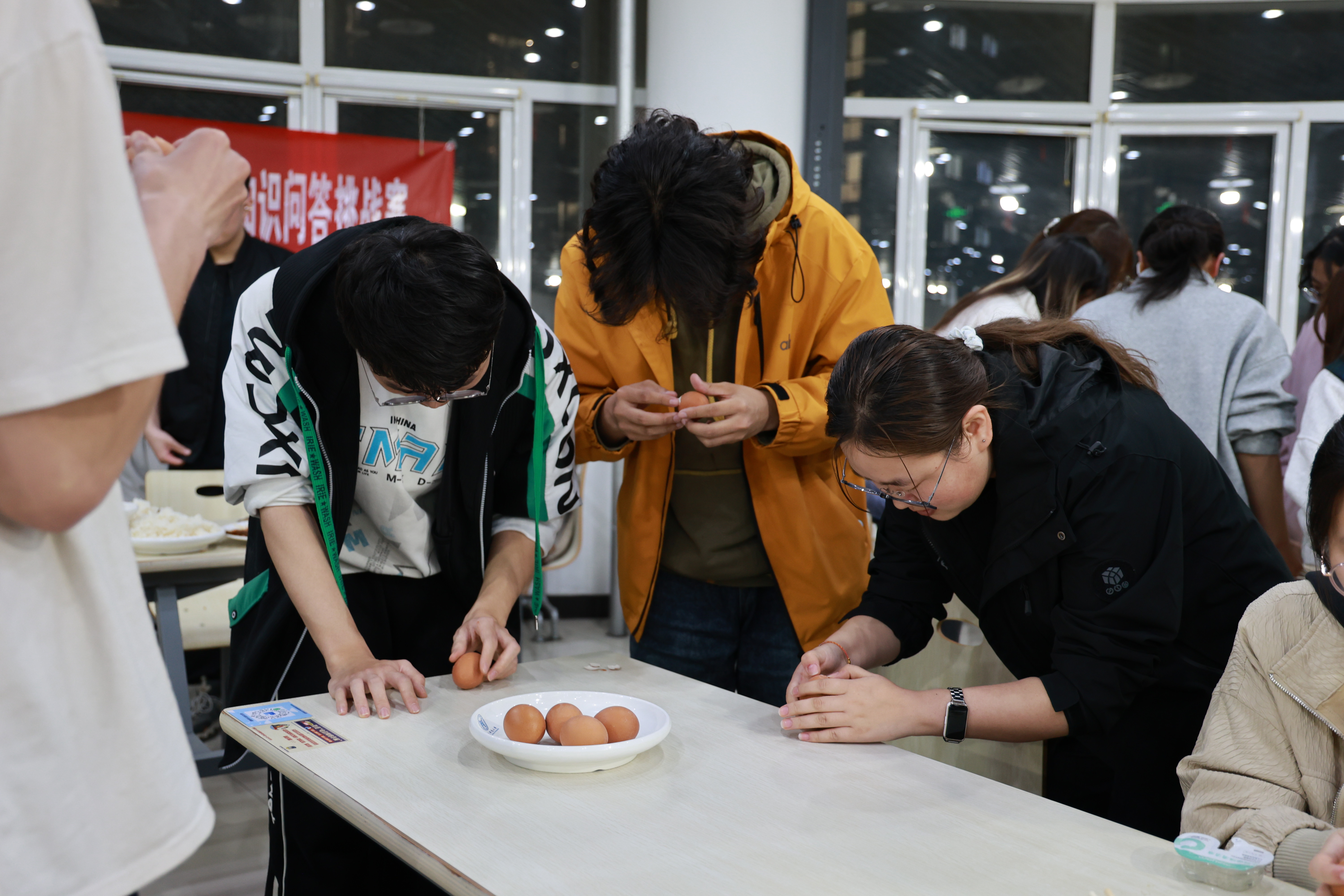 紧张比拼之余,“巧剥蛋壳”小游戏欢乐上线。各队代表小心翼翼剥壳,比拼速度与完整度,现场笑声不断。轻松有趣的互动,让赛场多了一份轻松与活力。