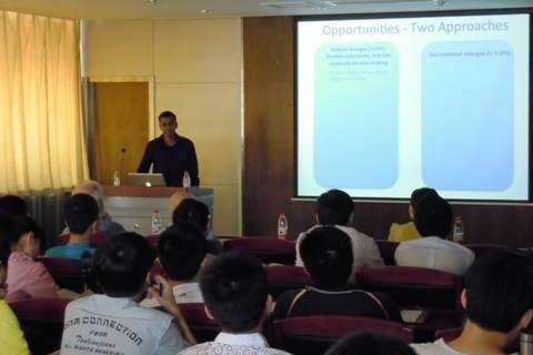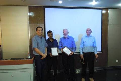 首先David G•C•Robertson教授为大家作了题为“The Behavior of Slags in Rising Bubbles in Liquid Metals, Using the 'Open Top Bubble' Technique”报告,在报告中他指出钢液里渣和气泡的行为。接着Sridhar Seetharaman教授讲了“Sustainable Iron and Steelmaking Challenge and Opportunities for University Research”,介绍了以往的研究成果,以及未来的研究方向,并提出了不少待以研究的课题。最后,Ken Mills教授为大家介绍了铸坯振痕的产生,主要是分析了结晶器内的气泡,振动周期等参数的影响。