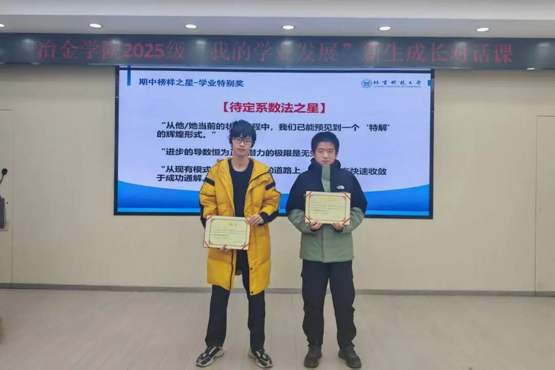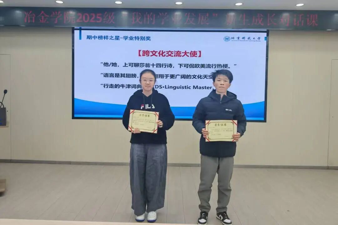 针对新生普遍关注的期中成绩问题,课程以 “期中学业分析:解码你的成绩单” 为模块,从班级、专业等维度展开梳理,帮助新生整体把握学业现状。同时,汪强老师还为班级优秀同学颁发学业特别奖,以表彰先进、树立标杆。