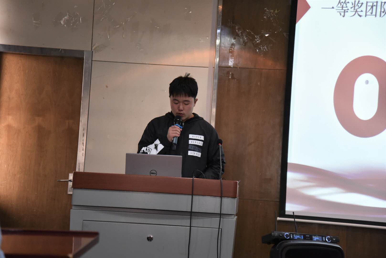 首先,主持人田逸轩介绍了本届钢模大赛的参赛情况与奖项设置,本次大赛有114支队伍共计三百多名同学参与,最终评出了35支获奖队伍——一等奖4支,二等奖6支,三等奖8支和优秀奖17支。