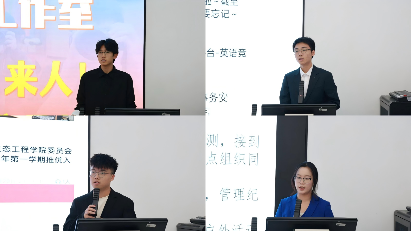 学院“冶行”工作室、团委各部门主席、部长,结合相关工作和要求,分别围绕“工作室宣讲”“科创竞赛”“第二课堂”“生活委员培训”“推送制作”“学习委员培训”“文体活动”等主题开展了专项培训,培训工作围绕新生班级实际遇到的管理问题进行了解答和工作要点介绍。