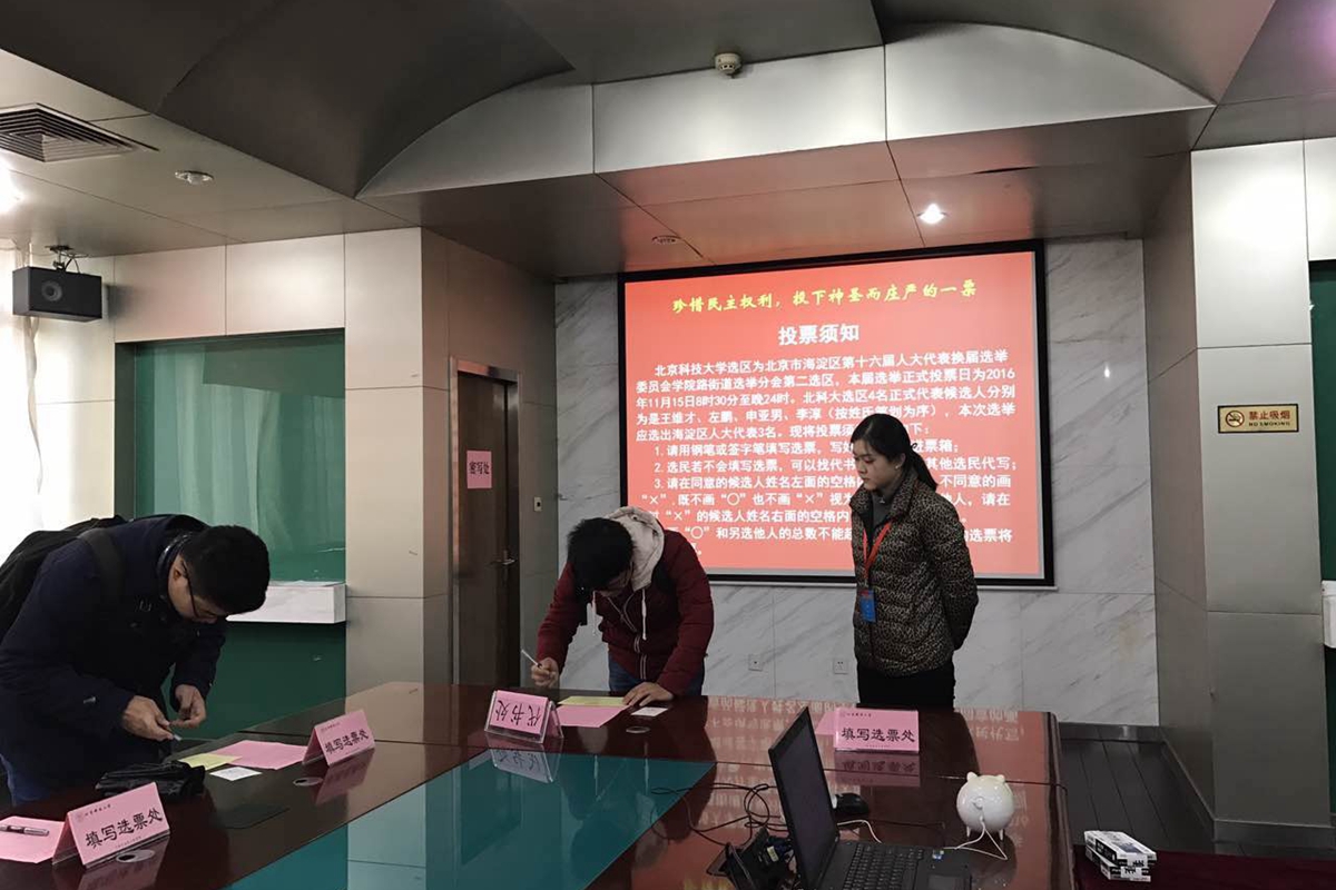 按照海淀区选举工作的整体安排,11月15日为海淀区第十六届人大代表换届选举的投票日。结合学校及学院实际,av电影 在冶金生态楼318会议室设置了选举站。学院领导高度重视换届选举工作,精心部署、周密安排,广大选民热情高涨,积极参加投票。11月15日上午7点30分,av电影 选举工作组全体人员到位,做好投票选举的一切准备工作。8点30分,投票正式开始。av电影 选举站准时开放投票时间,查验选民证、发放选票、接受选民投票。大会平稳有序,选举氛围积极良好。