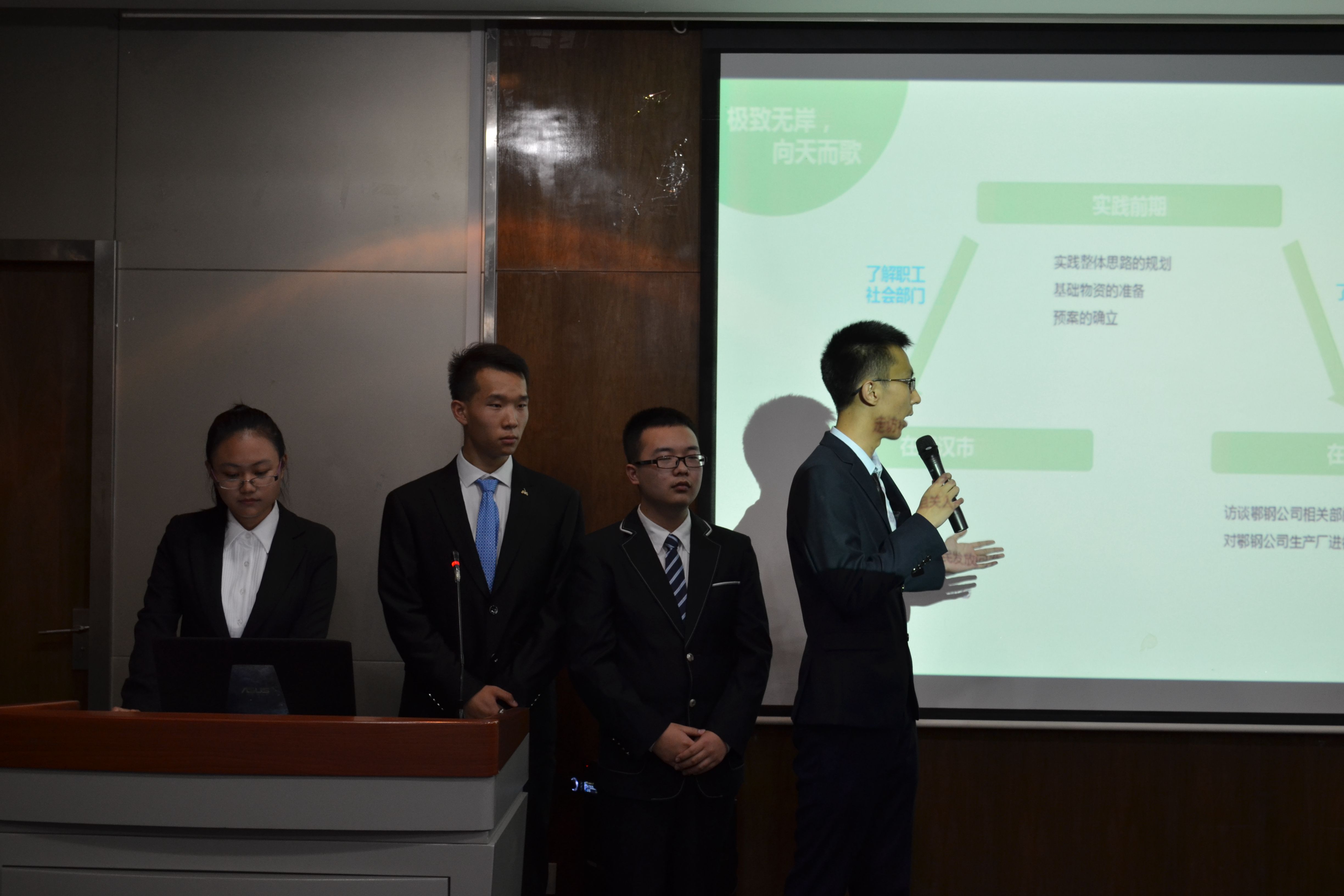 参加此次答辩的实践团队同为钢铁产业去产能的调研,各团队的实践方式却各有特色,在原有的调研方式的基础上,各有创新,答辩过程十分精彩。评委老师就题论题,巧妙提问,答辩队员凭借前期充分的准备以及实践的实际情况积极作答。