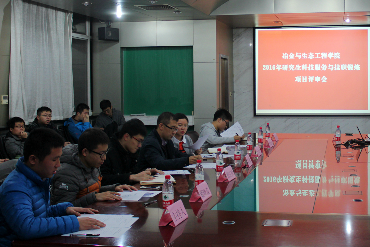 11月1日,av电影 2016年研究生科技服务与挂职锻炼评审会在冶金生态楼举行,本年度立项团队依次进行项目总结汇报。av电影 、冶金国重研究生辅导员陈曦、李元坤、侯雨阳、翟晓波、武文合、黄正欣担任评委。评审会由学院研究生会副主席陈威同学主持。硕士2016级研究生代表现场观摩了答辩环节。