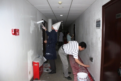 的学习实践中,以实际行动学习好、贯彻好、落实好党的群众路线,2013年9月4日下午,学院组织冶金楼三层办公教师进行冶金楼三层、二层楼道公共区间的墙面粉刷义务劳动活动,院长张立峰,副院长张建良、王春义、陈骏、张百年等院领导以及学院办公室人员都积极参加了“实实在在为群众做好事,为学院成长发展做实事”的群众路线教育实践活动。