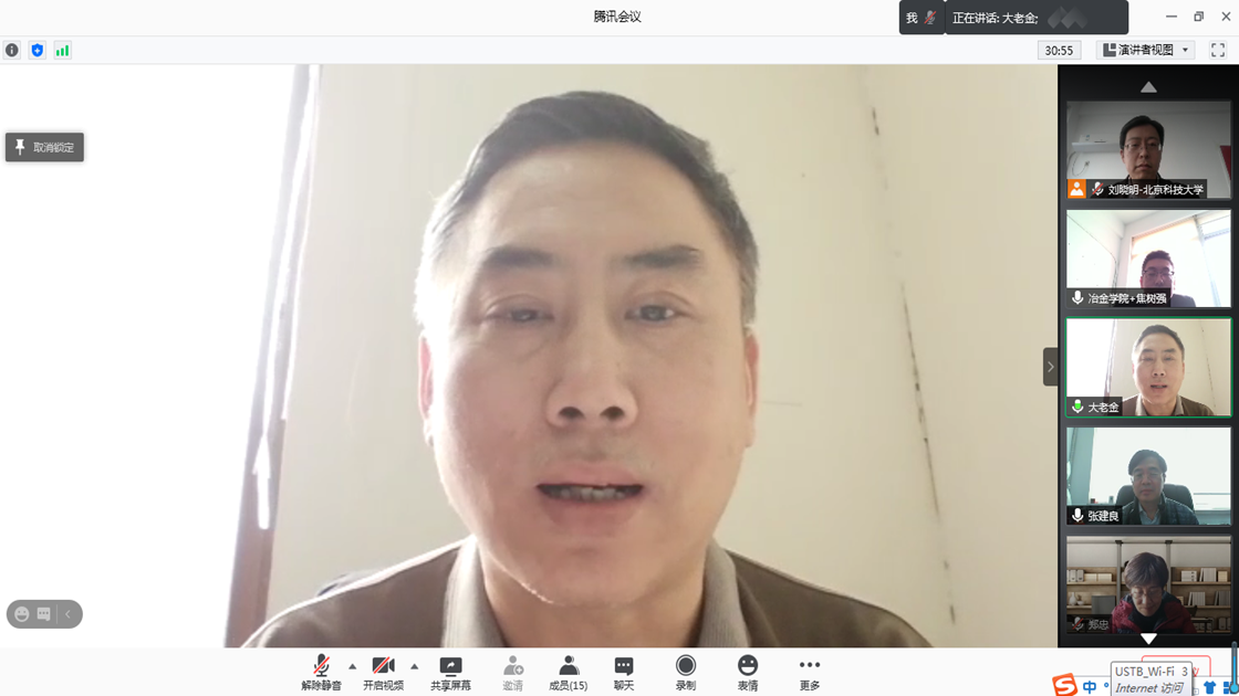 av电影 冶金工程国家级实验教学示范中心2020年教学指导委员会年度会议于2021年3月4日14:00-16:00召开,根据疫情防控要求,本次会议通过腾讯会议进行。出席本次会议的有冶金工程教学示范中心教学指导委员会廖春发教授(江西理工大学 主任委员)、郑忠教授(中南大学 委员)、杨建广教授(中南大学 委员)、杜涛(东北大学 委员)、吴胜利教授(av电影 委员),av电影 资产管理处金仁东处长、徐宁科长、乔瑞鑫老师,av电影 党委书记张建良教授、院长焦树强教授、示范中心主任刘晓明教授及示范中心代表5人。会议由av电影 院长焦树强教授主持。