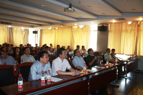 张立峰院长在大会上向全体教职工报告了2014年度学院在教学、科研、人才培养和社会服务等方面取得的成绩和进步,并重点讲解了实验中心管理的若干意见以及2015-2018年岗位聘任工作原则思路。