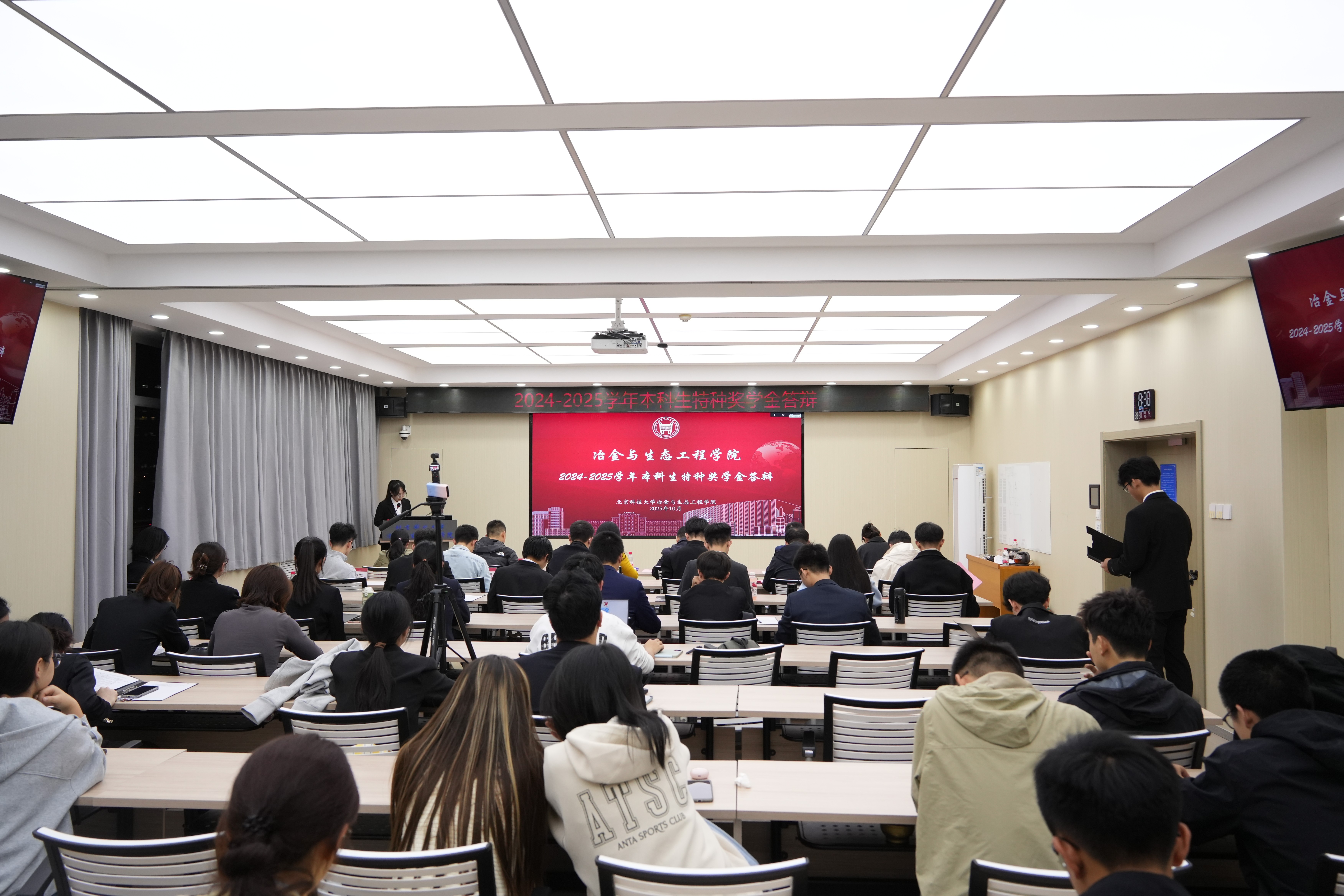 av电影 特种奖学金答辩会于10月14日晚19:30正式启幕。本次活动邀请到心理素质教育中心副主任杜学敏,av电影 党委副书记,副院长康泰,钢冶系老师焦克新,有色系老师葛建邦,理化系老师施耐克,实验中心冯婷,各年级班主任代表:都昱、田俊行、谢明壮;各年级本科生辅导员及新生代表共赴学业主题成长盛会。
