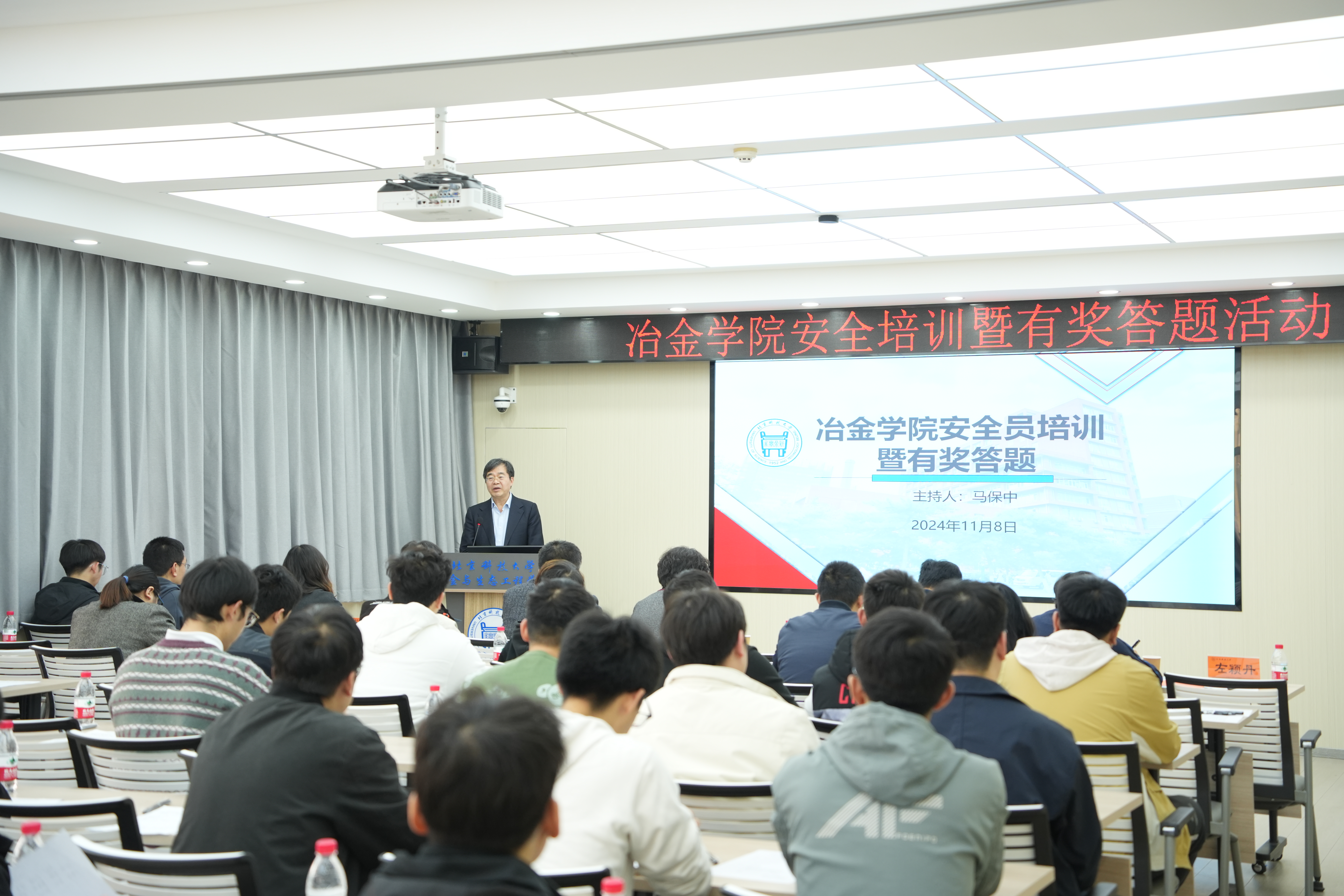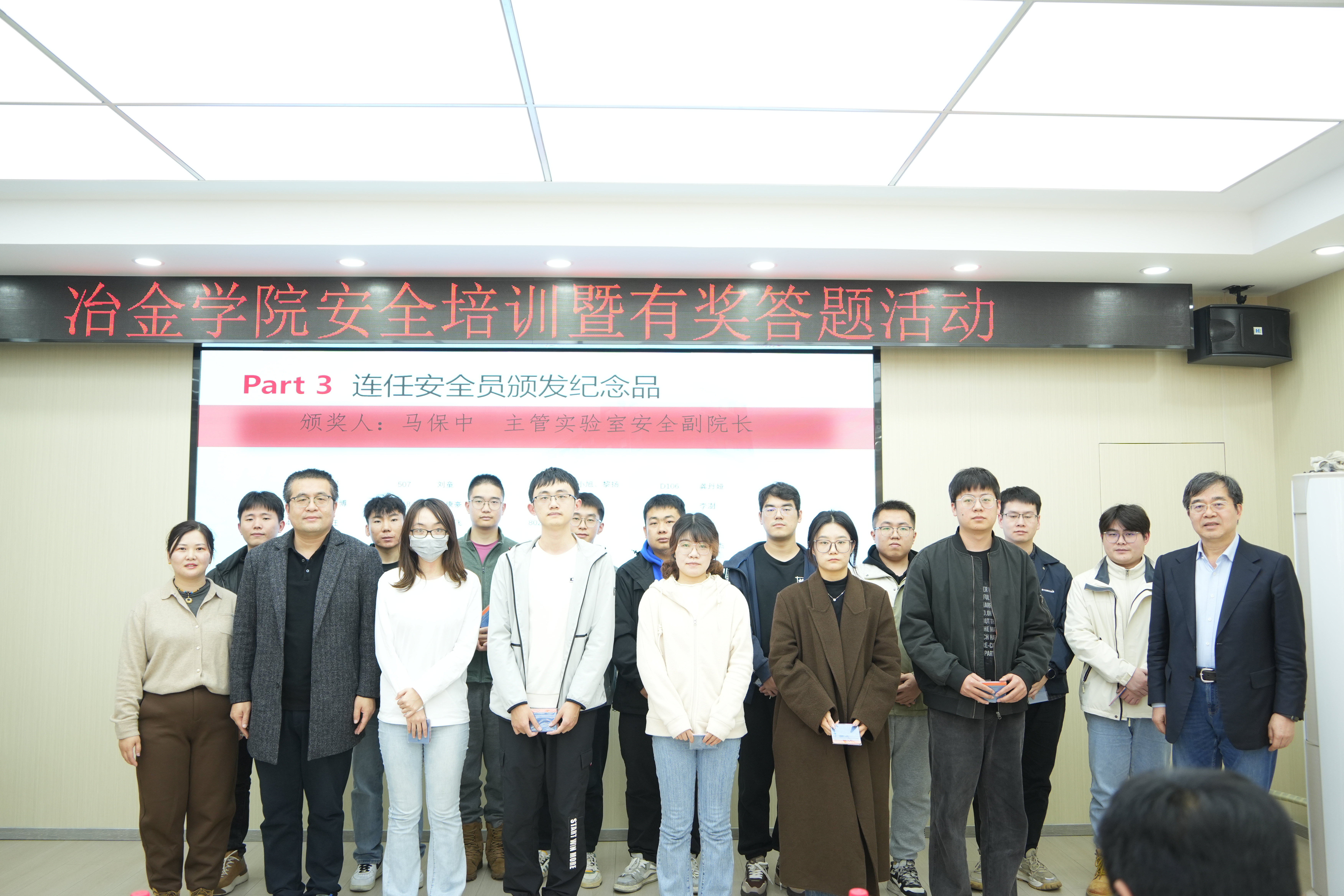 在安全员的竞答环节,安全员们有的扶额沉思、有的眉头紧锁、有的面露微笑、有的积极抢答。在热烈的竞答活动中,有20余名安全员获得满分,系所负责人为其颁发了奖品。