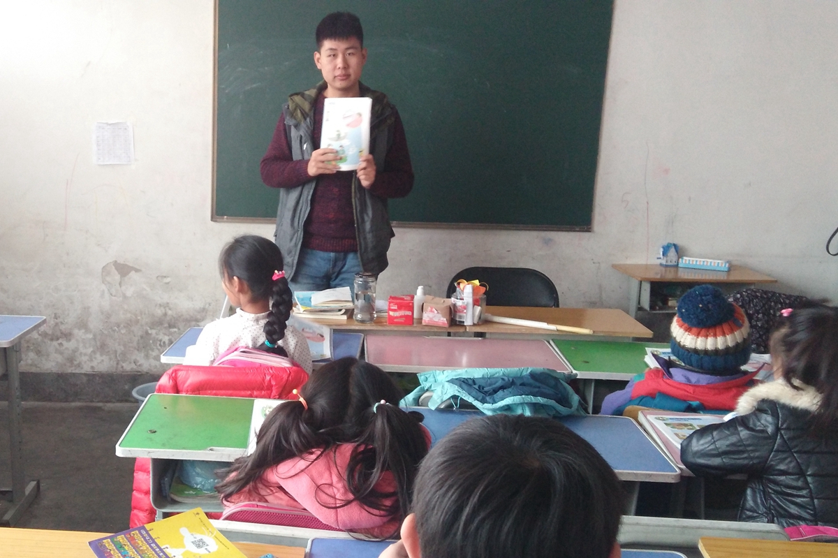 志愿者们虽然已经习惯了支教的活动,但开始讲课时还是有些许紧张,但是随着上课的进行,紧张的心情逐渐消去。课堂上志愿者向小学生们提出小小的问题,小朋友们都积极踊跃的争着回答问题,气氛活跃,充分调动了小学生们的上课积极性。面对调皮的小学生们,志愿者们依旧耐心的为她们授课,解答问题。看着他们乖乖的坐在位置上眼里充满求知的欲望,志愿者感动更是欣慰。