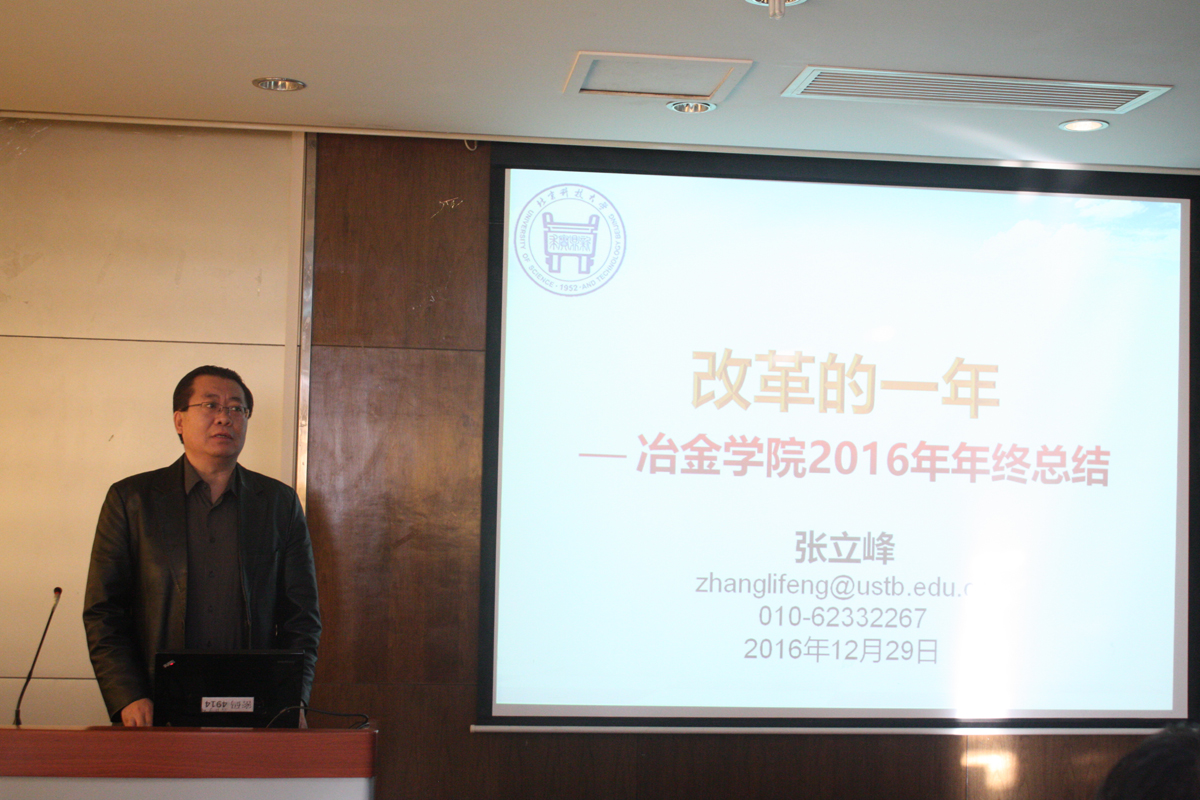2016年12月29日,av电影 2016年度述职大会在冶金楼616青钢报告厅顺利召开。学校党委书记武贵龙出席本次论坛,av电影 院长张立峰、院党委书记张建良及教师70人,学生30人共计100余人参与会议。本次会议由av电影 副院长张百年主持。