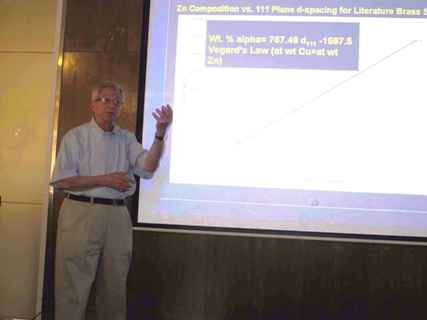 10月7日上午10点,“冶金大讲堂”第十二讲的第一场报告在冶金楼青钢报告厅举行。本场报告的主题是“古代黄铜星盘的同步辐射X射线衍射和荧光分析”,由潜伟教授主持。Michael Notis 教授首先就如何应用同步辐射X光衍射和荧光分析对古代星盘的主要部件的成分和制造技术的进行分析问题进行了详细的介绍,并对相似的手持式X光荧光分析法与同步辐射荧光分析法的数据处理结果进行了优缺点的讨论。Michael Notis 教授进一步谈到,普遍认为历史上矿炼铜的含锌量一般不会超过30%wt左右的限制。但是他的研究显示,通过矿炼方法得到含锌量超过40%wt的矿炼铜是可能的。但是要实现这样的含量,只能在很短的熔炼时间内操作微量的产物,这种工艺与历史记载大相径庭。讲座结束后,在场师生就黄铜里的残杂物、合金含量配比、冶炼技术、同步辐射荧光分析法的准确性等问题,与Notis教授进行了讨论。