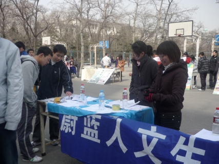清晨在SEA会长的带领下,原SEA成员早早来到了操场,布置好自己的场地。不久新生多了起来,SEA历次活动精彩的展板和宣传画,吸引了不少同学的驻足观看,他们表示对生态问题和我们学社很感兴趣。对有兴趣的同学,我们拿着宣传单详细介绍SEA的活动和特色。不少同学听了我们的介绍后纷纷现场报名,很希望加入我们这个团体。还有部分留学生,和我们用着半英文半中文愉快融洽的交流起来,也很快填写了报名表。下午人渐渐少了,我们带着这一天的愉快和成果,结束了招新活动。