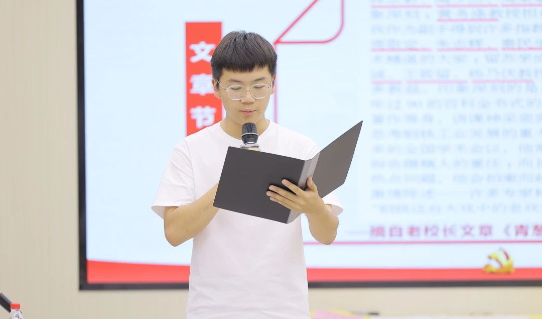宗燕兵及学生代表张含悦、王宇通深情朗诵了《青葱岁月,钢铁摇篮》文章选段。
