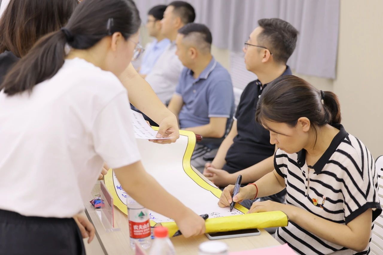 与会青年教师在卷轴上依次写下杨天钧老校长文章中提到的优秀先生姓名,表达了传承“钢魂”精神、潜心教学、矢志育人的决心。