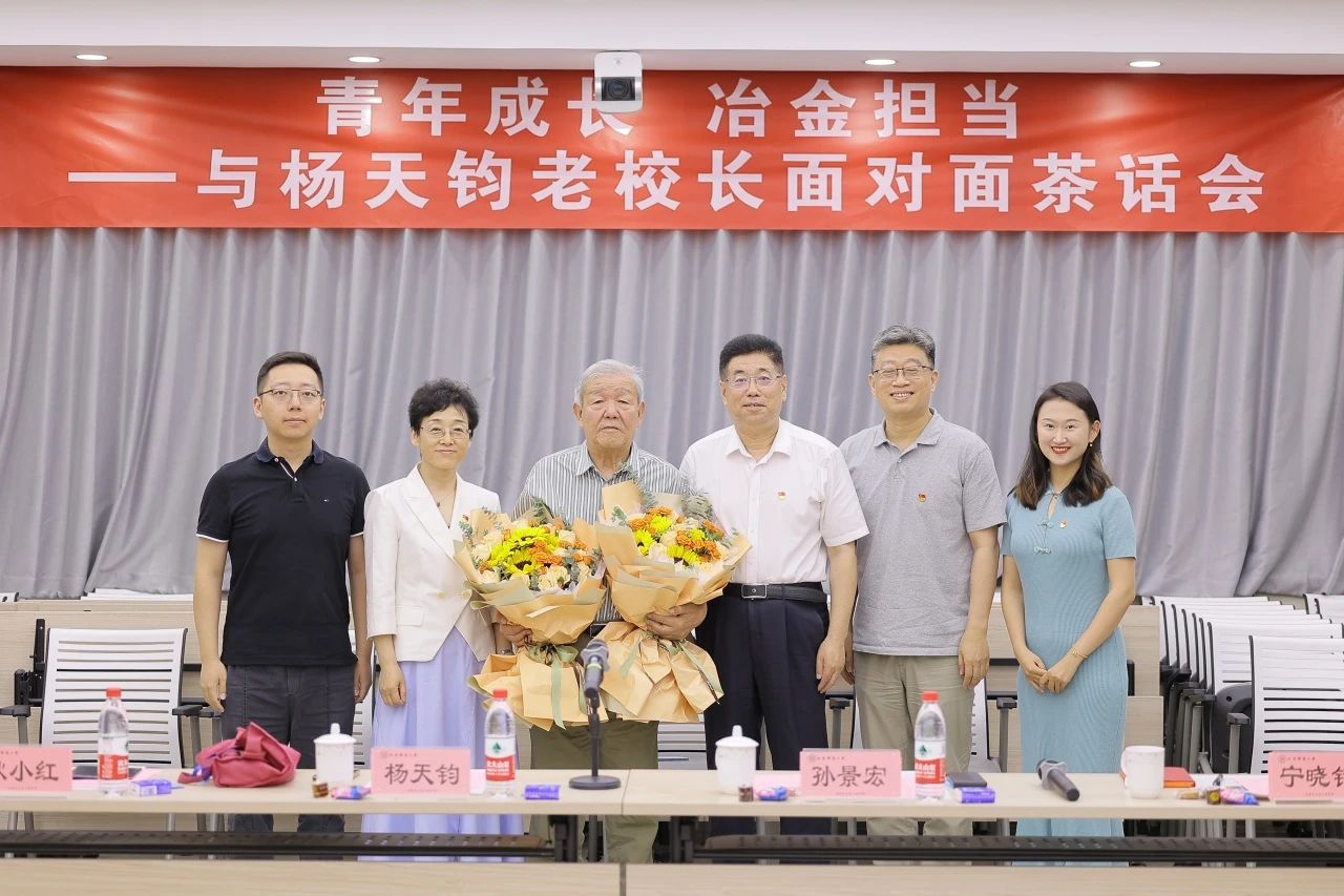 在中国共产党103周年华诞之际,7月1日上午,“迎七一:青年成长 冶金担当——与杨天钧老校长面对面茶话会”在冶金楼616报告厅举行。茶话会邀请av电影 原校长杨天钧与av电影 、冶金全重、碳中和研究院、卓越工程师学院、人工智能研究院等20余名青年师生代表共聚一堂,共同赏阅杨天钧老校长在av电影 校报上发表的文章《青葱岁月,钢铁摇篮》,追忆往昔岁月,共话事业发展。校党委副书记孙景宏、科技史与文化遗产研究院党委书记耿小红、管庄校区党委书记宁晓钧、宣传部副部长薛浪出席活动。av电影 党委书记宗燕兵主持活动。