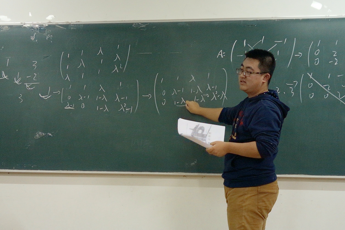 团委学生会协办,面向本科一年级、二年级学生开展,主要形式为学科期中知识点梳理与疑点难点解答。首场辅导《线性代数》由本科2014级李巍同学讲授。