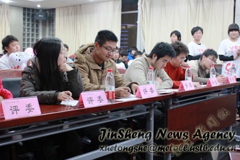 第二届“钢魂杯”新生辩论赛初赛第一场在青钢报告厅举行。本科11级辅导员张瑜老师应邀出席。评委有院学生会主席孙德鹏、副主席汪毅捷以及10级院辩论队队员:杨兴昊、李婷、秦洋、任建澜、马玉松。此次大赛的主要目的是通过辩论来拉近新生们的距离并为11级院辩论队挑选优秀人才。