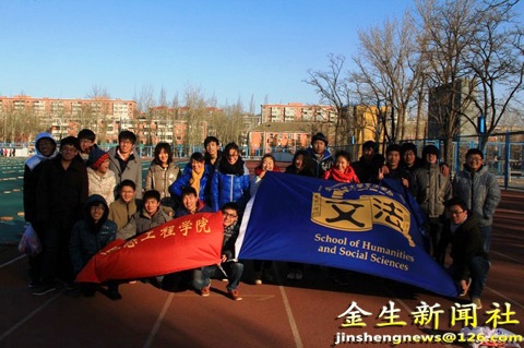 每个小组由四个男生和两个女生组成;相反,文法学院的每个小组由四个女生和两个男生组成。每个学院出一组与另一个学院的一组组成一支队伍,这样十二个小组就组成了六支比赛队伍。虽然冬天的北京寒风凛冽,但是这丝毫不影响同学们的比赛热情,参赛同学奋力奔跑,场下同学呐喊助威,让整个操场显得活力四射。