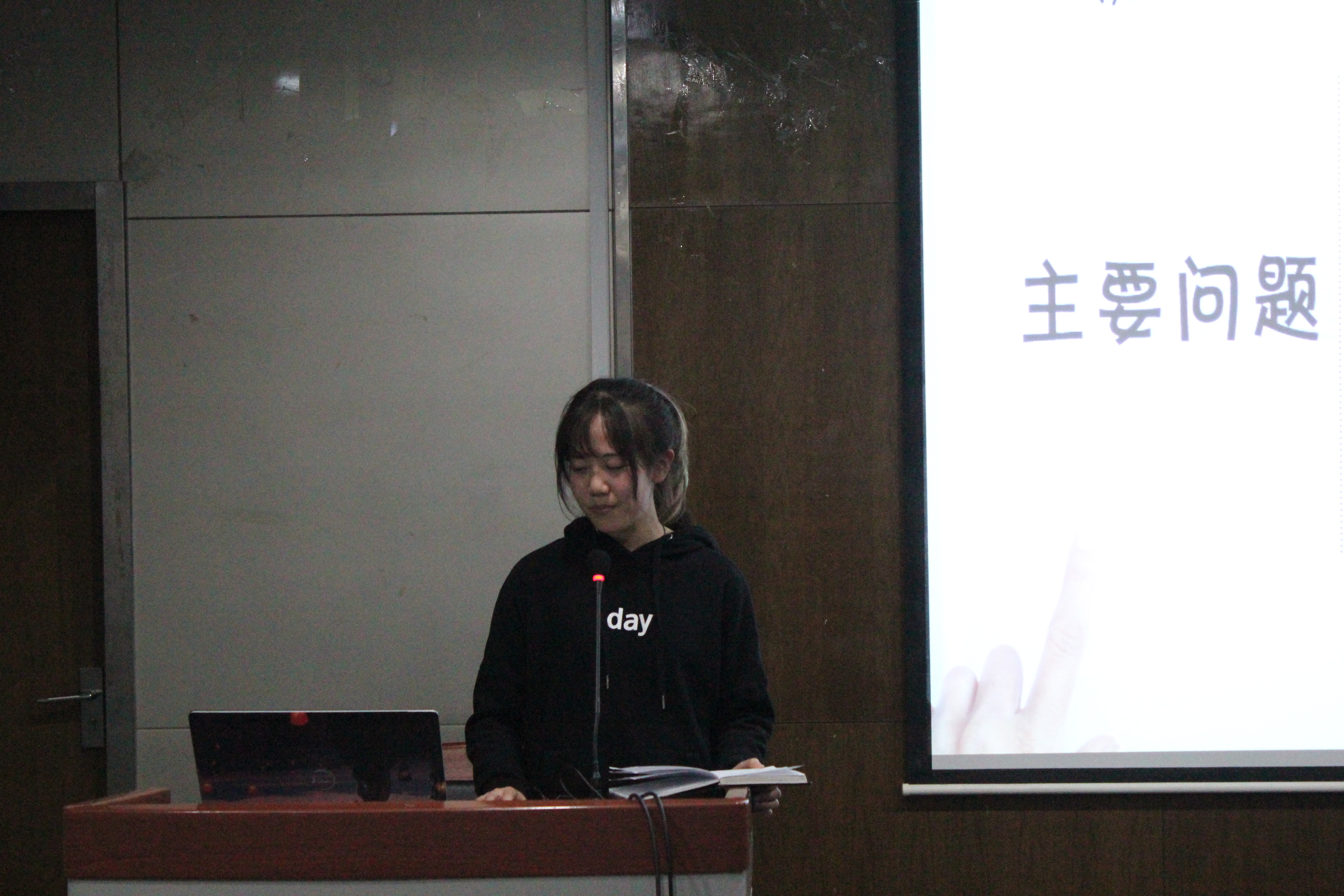 紧接着进行团校第一讲,院学生会副主席卜雨衫为同学们进行团学工作规范培训。她从PPT的制作、物资购买以及一些工作技能三方面对同学们进行了培训。