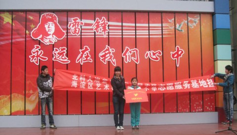 志愿者以第49个“学雷锋纪念日”暨第13个中国青年志愿者服务日为契机,通过走入小学,共建志愿服务基地,进一步弘扬雷锋精神、传承志愿理念,以志愿服务实际行动践行北京精神。