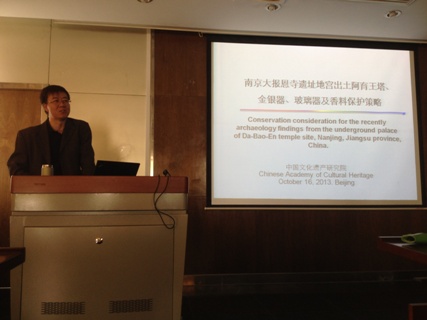 10月16日下午,中国文化遗产研究院副院长马清林研究员在青钢报告厅主讲了一场题为“南京大报恩寺遗址地宫出土阿育王塔、金银器、玻璃器及香料保护策略”的讲座。魏书亚教授主持,潜伟教授、李晓岑教授以及部分学生参加了此次讲座。