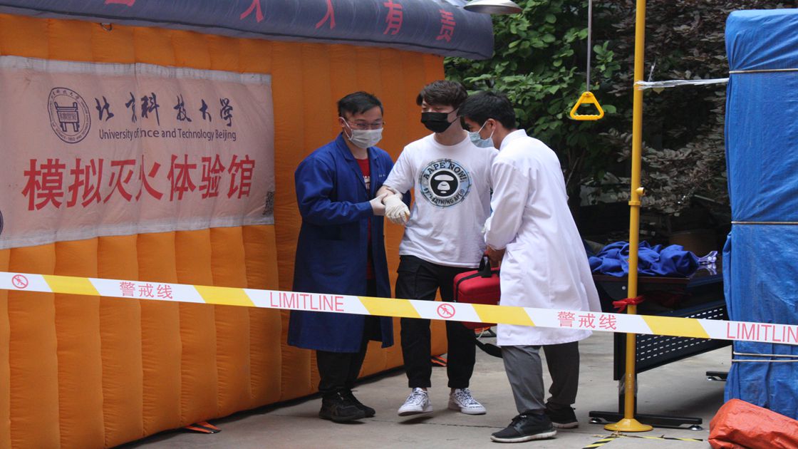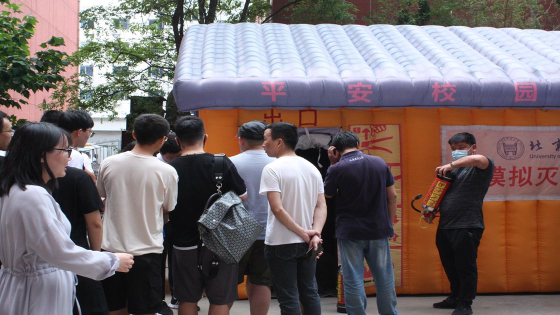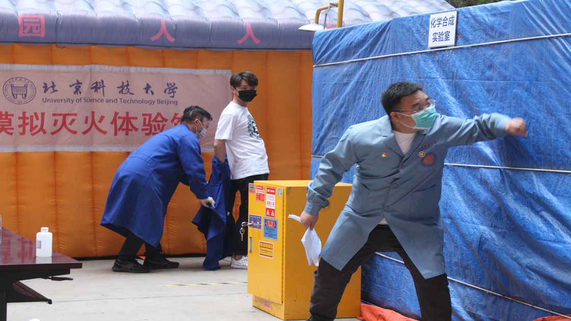av电影 、钢铁冶金新技术国家重点实验室及科技史与文化遗产研究院共计百余名师生观看了应急演习,并在模拟灭火体验馆学习灭火的要领,用灭火器进行实际操作扑灭电子火。